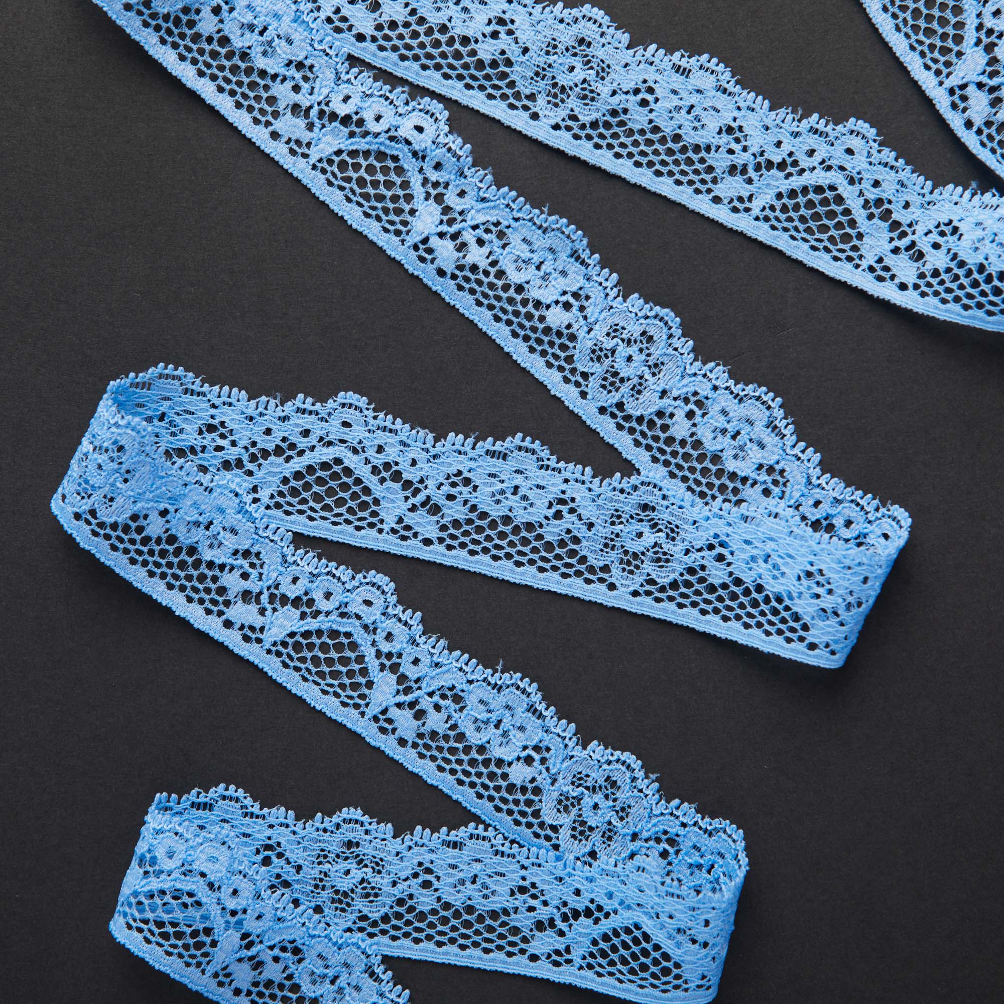 Кружево эластичное узкое голубое