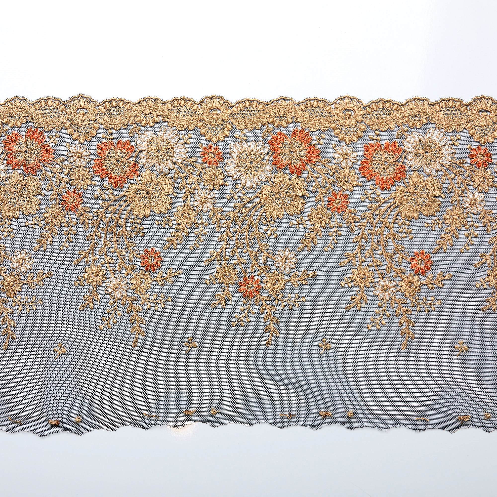 Вышивка на неэластичной сетке черная