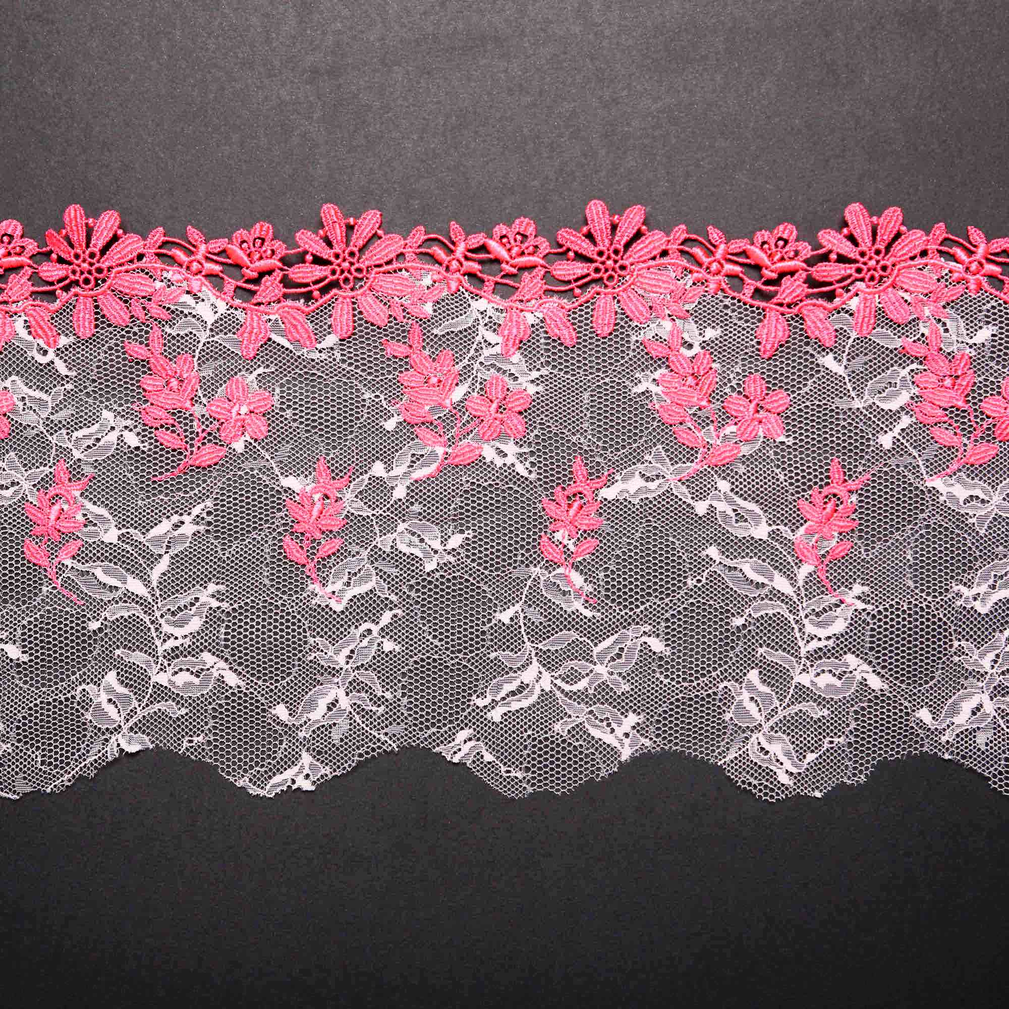 Вышивка на неэластичной сетке розовая