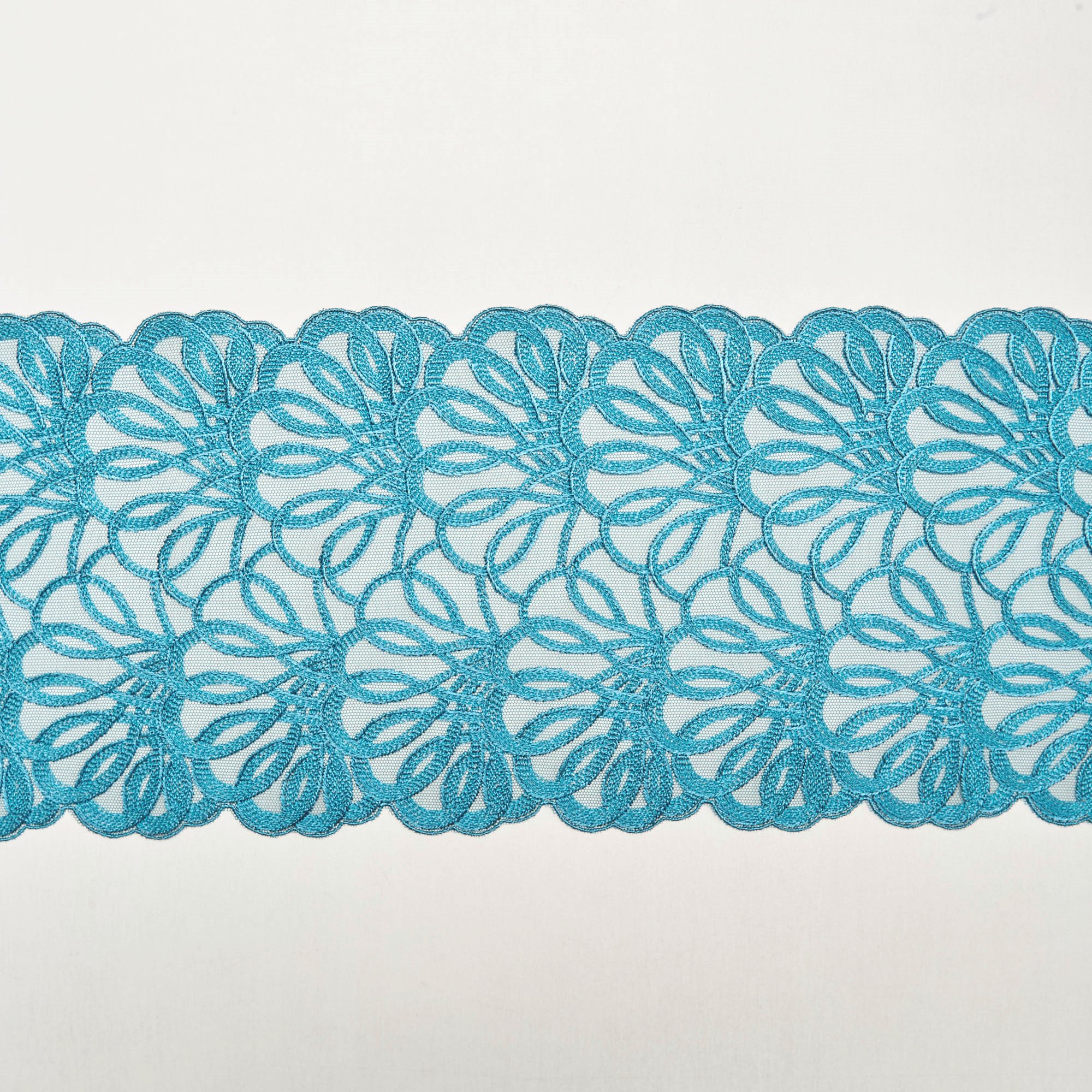 Вышивка на неэластичной сетке бирюзовая