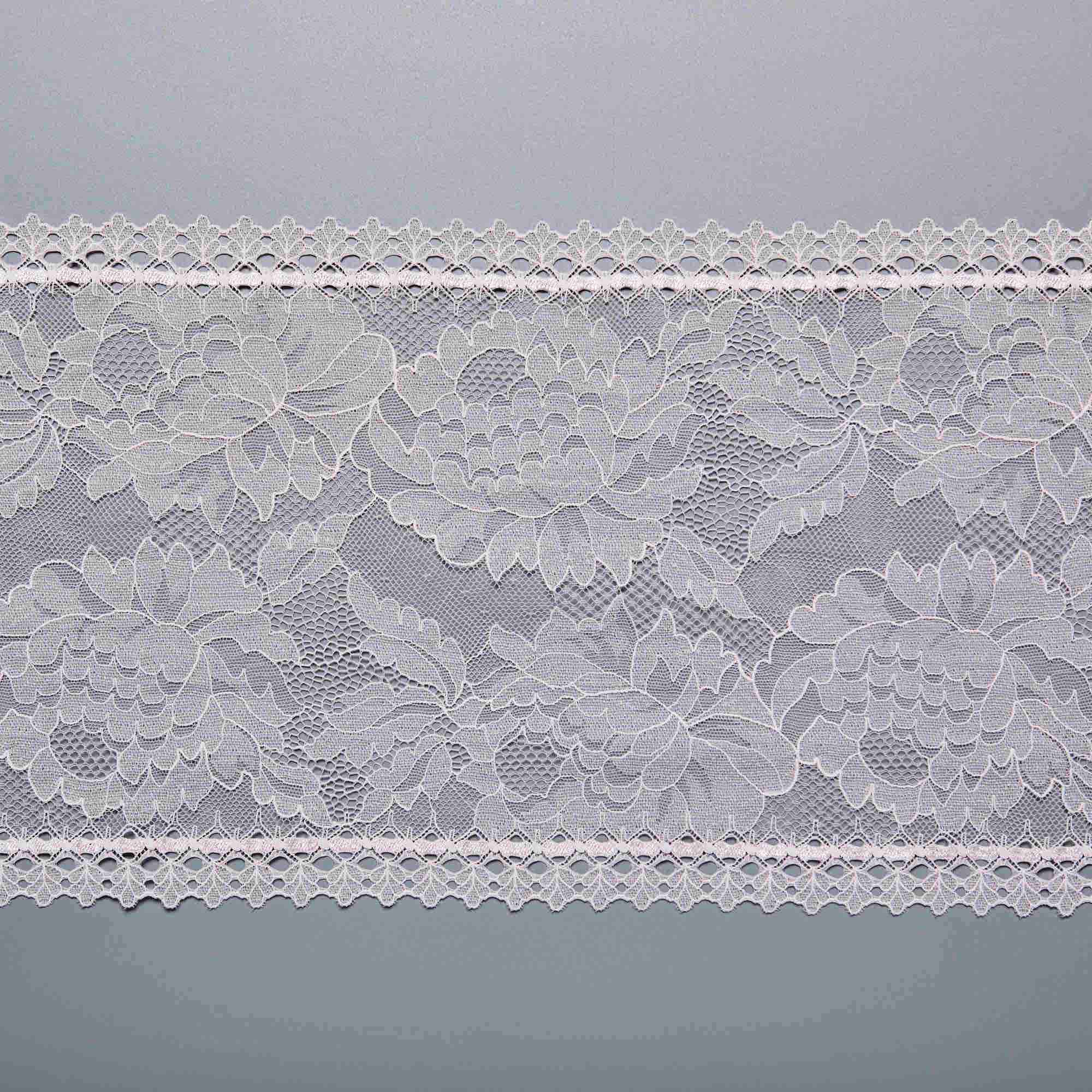 Эластичное кружево арт. 102720 (95% полиамид, 5% эластан), плотность 20.5 г/м2, ширина 21 см, Франция. Эластичное кружево для белья для пошива нижнего белья, трусиков, бюстгальтеров. Французское кружево стрейч с высоким содержанием полиамида обеспечивает износостойкость. Закажите эластичное кружево для белья оптом в WOStock.ru