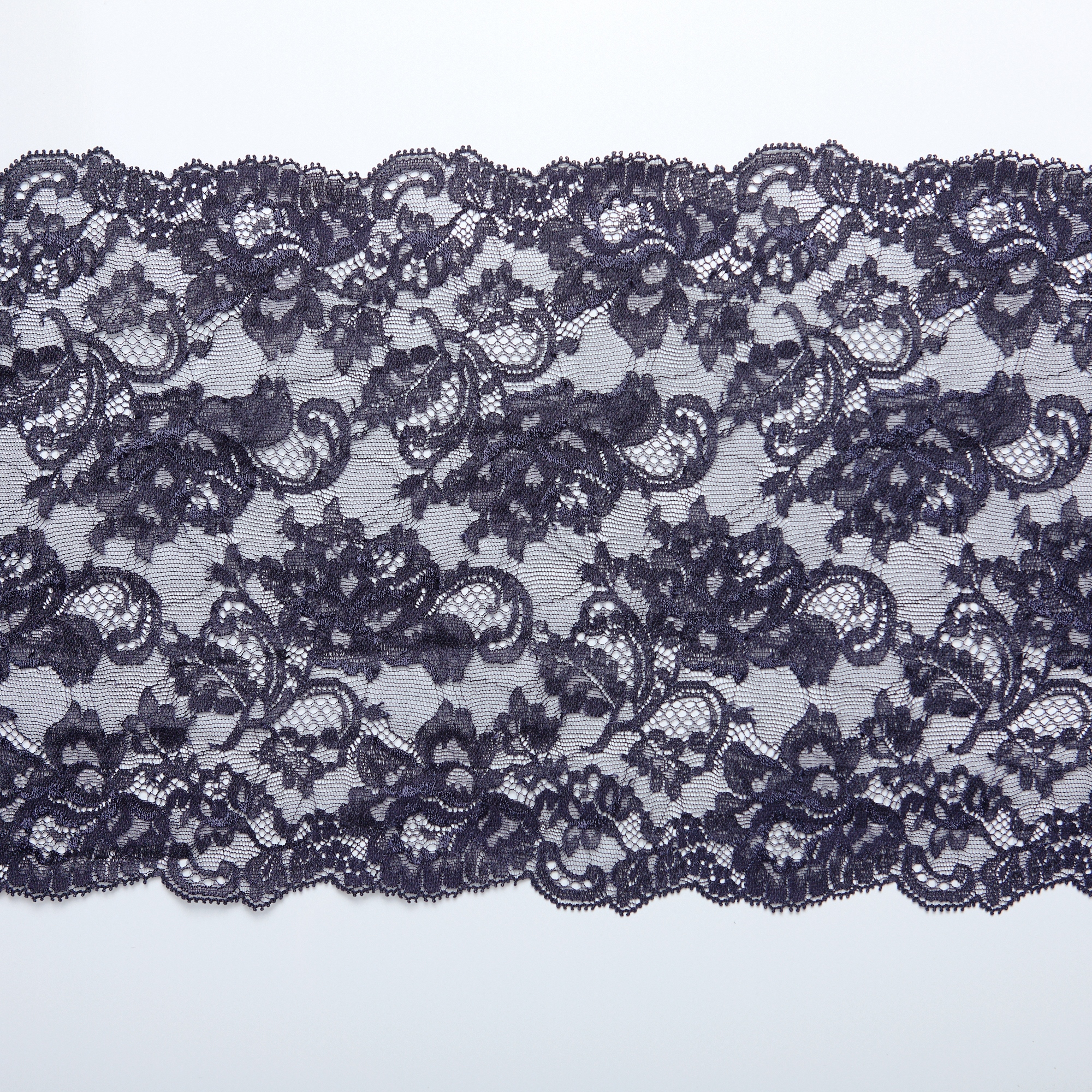Эластичное кружево арт. B1549C (89% полиамид, 11% эластан), плотность 25.8 г/м2, ширина 20.6 см, Франция. Эластичное кружево для белья для пошива нижнего белья, трусиков, бюстгальтеров. Французское кружево стрейч с классическим узором для элегантных моделей. Закажите мягкое кружево оптом в WOStock.ru